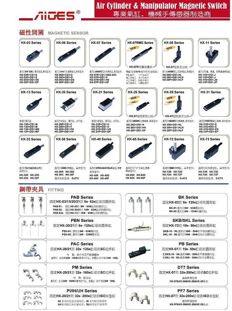 AIGES磁性開關HX-07系列有:HX-07R,HX-07RD,HX-07N,HX-07P;