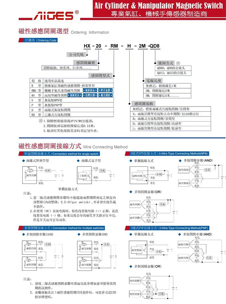 AIGES磁性開關HX-08系列有:HX-08R,HX-08RD,HX-08N,HX-08P;